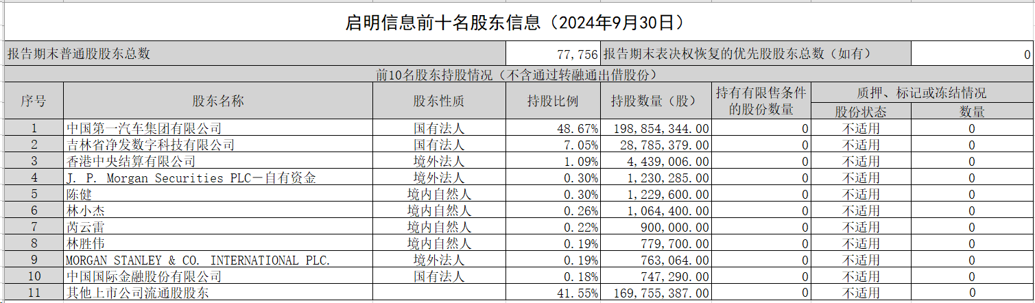 江南JNSport体育 信息前十名股东信息(截至2024年9月30日)