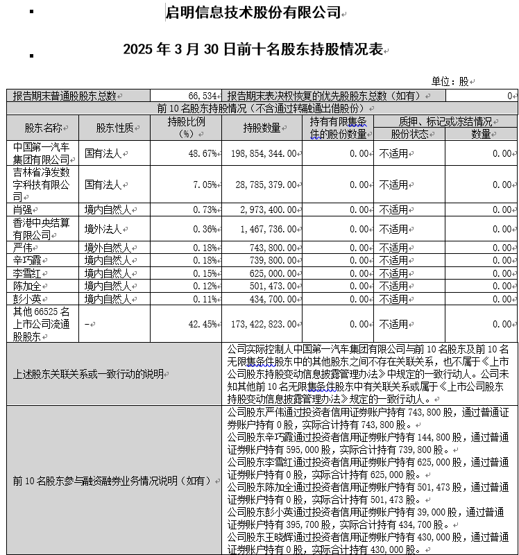 江南JNSport体育 信息前十名股东信息(截至2025年3月30日)