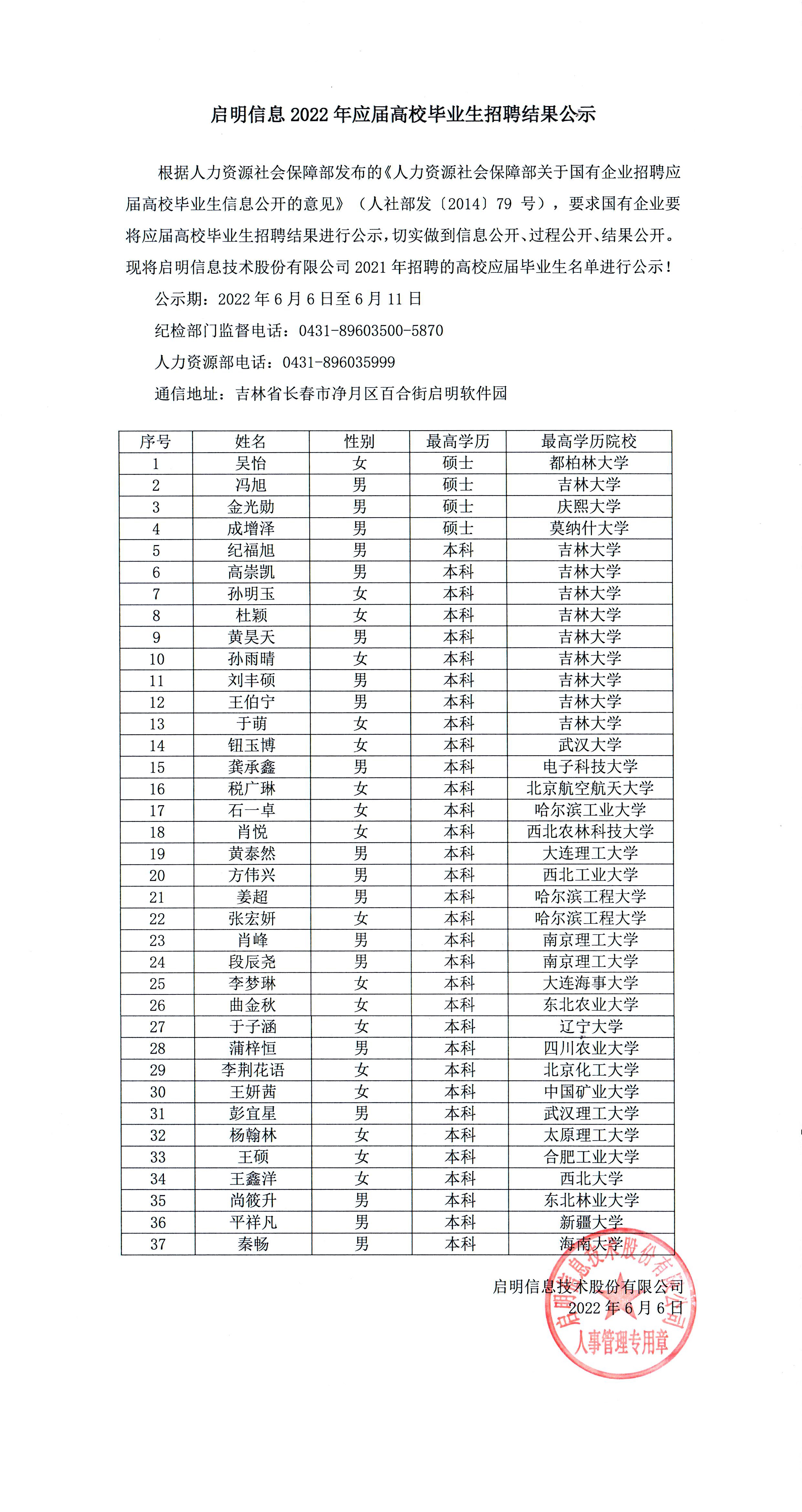 江南JNSport体育 信息2022年应届高校毕业生招聘结果公示