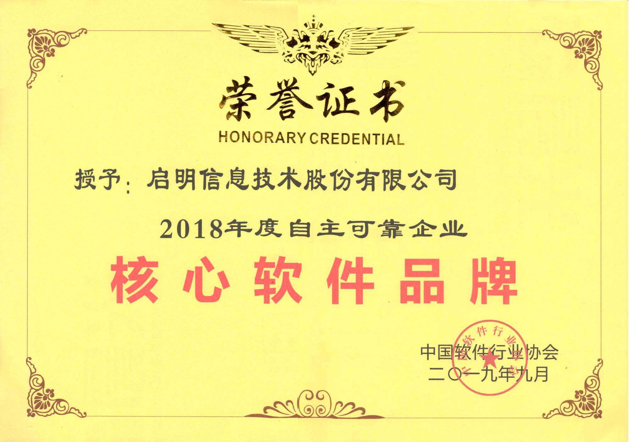 中国自主可靠企业核心软件品牌-2018